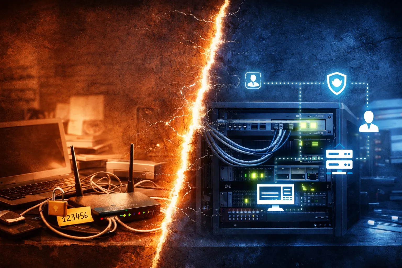 Прочети още: 01. Защо повечето български бизнеси работят с домашна IT инфраструктура — и защо това е сериозен рискНЕУДОБНАТА ИСТИНА: ДОМАШНА IT ИНФРАСТРУКТУРА В ОФИСА Голяма част от малките и средни бизнеси в България работят с IT инфраструктура, предназначена за дома, не за фирми. Не говорим за фрийлансъри.Не за хоби проекти.А за реални компании — със служители, клиенти, договори и отговорност. И това се приема за нормално. Докато не…